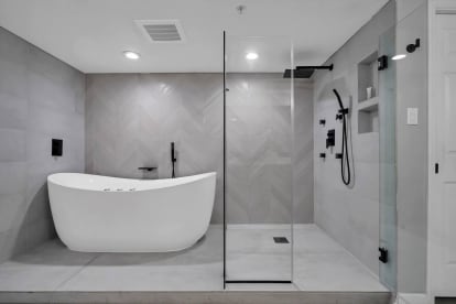 All bathrooms were completely remodeled in 2023 and feature quartz countertops and designer tile. The master bathroom has a luxurious heated and jetted bathtub, as well as a walk-in rain shower with body jets!