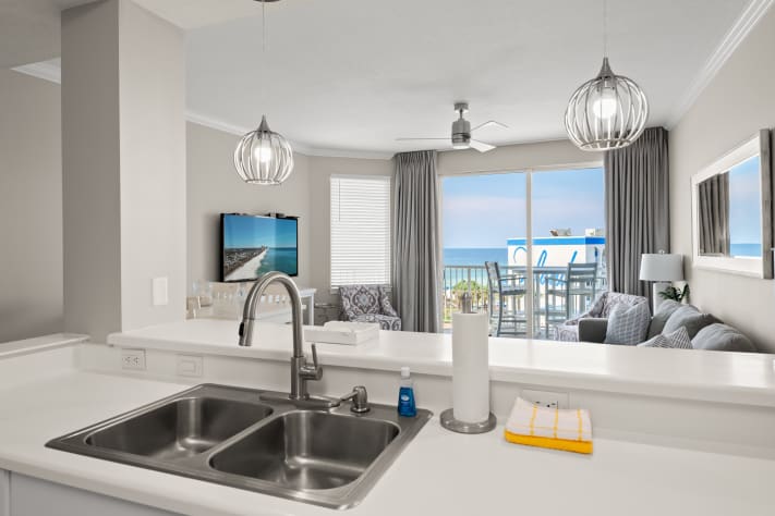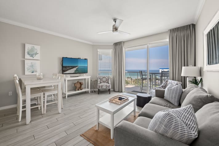 Destin West Gulfside 610 has everything you need for a perfect beachfront getaway!This beautiful coastal-designed condo has been fully renovated and includes new flooring, updated finishes, stainless appliances, modern lighting and plumbing fixtures, new furniture, and beautiful beach-inspired decor.