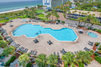 There are seven pools to choose from at Destin West. The Gulfside offers a large pool, a heated pool, and a hot tub. The bayside offers a 700-foot lazy river, a pool with a waterfall, and two large hot tubs in the center of the bayside complex. There is also a gradual decline pool that feeds into the Lazy River.